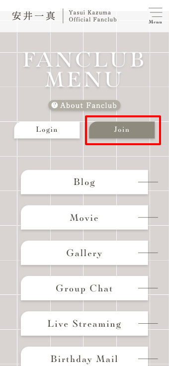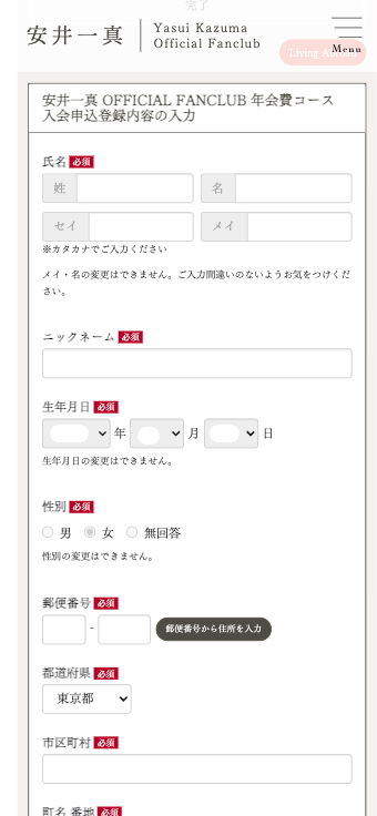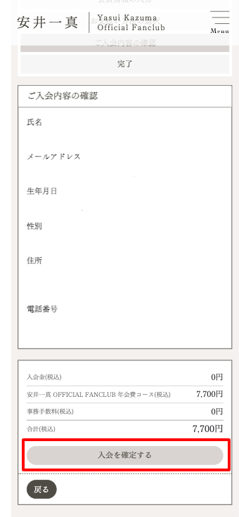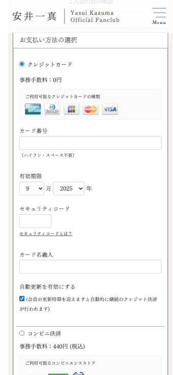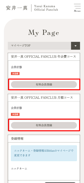 ⑤「安井一真 OFFICIAL FANCLUB」のMy pageにページが移りますので、